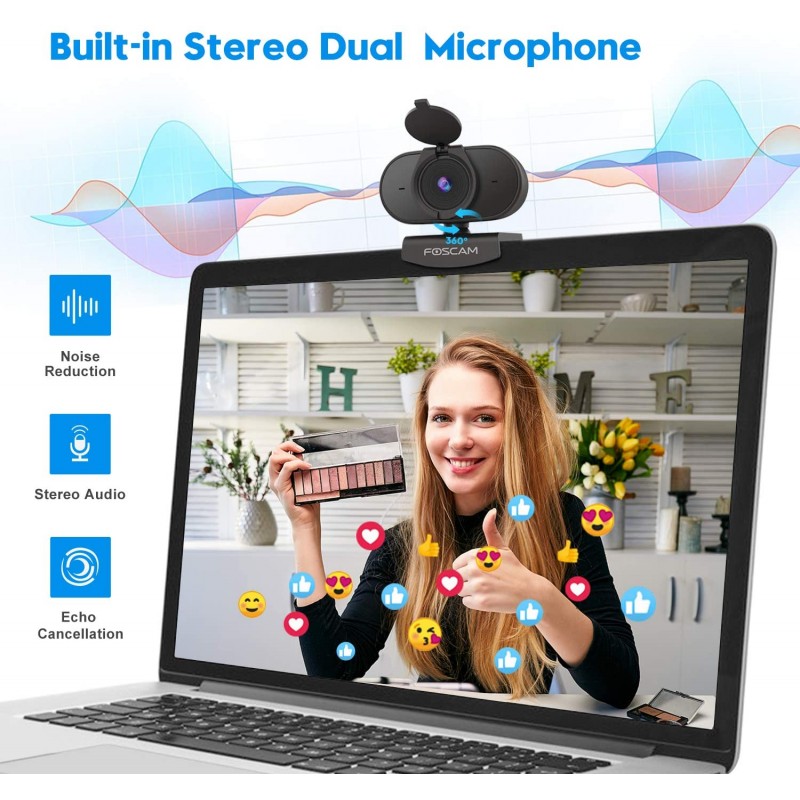 Η web camera της Foscam μπορεί να μεταδώσει βίντεο σε ανάλυση Full HD που αποδίδει εικόνα υψηλής ευκρίνειας και ανταποκρίνεται πλήρως στις απαιτήσεις των εφαρμογών βιντεοκλήσεων και τηλεκπαίδευσης. Η γωνία λήψης 78 μοιρών είναι αρκετά πλατιά ώστε να πιάσει δύο ανθρώπους που κάθονται μπροστά στην οθόνη του υπολογιστή.