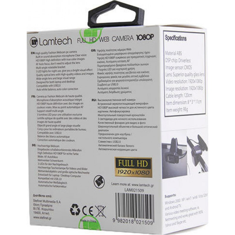 LAMTECH FULL HD USB WEB CAMERA WITH LED 1080P LAM021509
