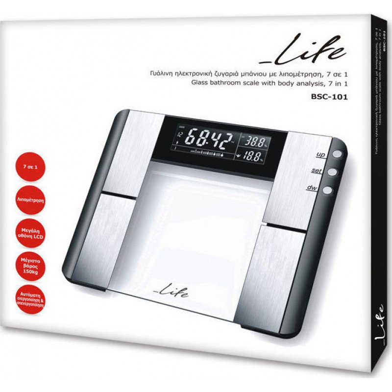 LIFE Silhouette Body fat scale BSC-101 glass & inox surface Ζυγαριά Μπάνιου με λιπομέτρηση 7 σε 1 (221-0077)