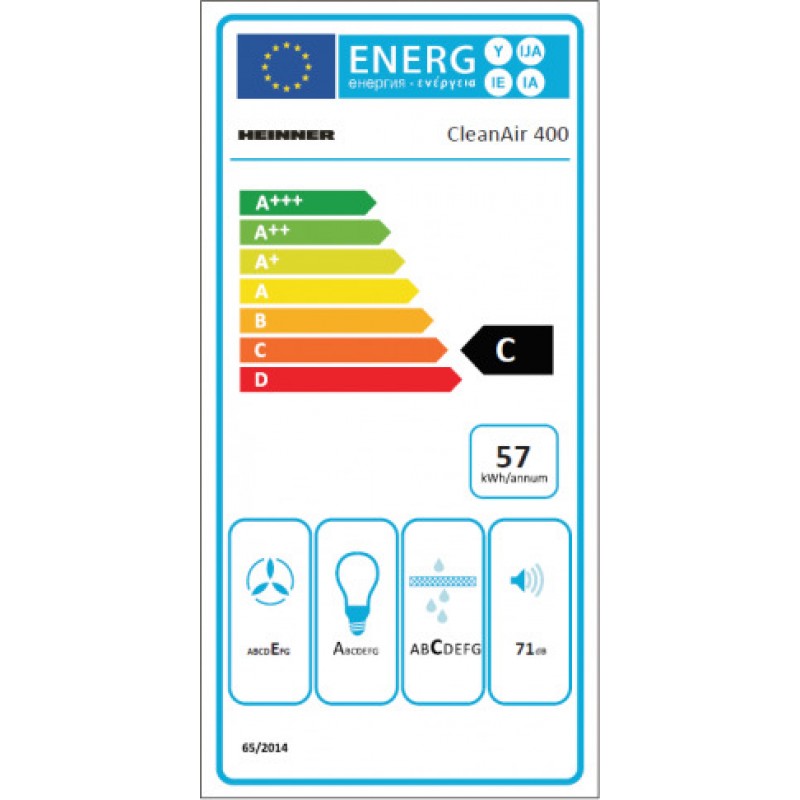 Διατηρείστε καθαρή και ευχάριστη την ατμόσφαιρα στην κουζίνα σας καθημερινά, με το λευκό απορροφητήρα HEINNER CH-400WH CleanAir πλάτους 60 εκατοστών. Διαθέτει 2 μοτέρ, έχει ικανότητα απορρόφησης 347,4 m3/h, μεταλλικά φίλτρα, 2 αργιλίου και 2 ταχύτητες απορρόφησης. Αποδίδει σε πολύ χαμηλά επίπεδα θορύβου μόλις 70dB και είναι πολύ οικονομικός αφού η ετήσια κατανάλωση ενέργειας του είναι μόλις 101 kWh.